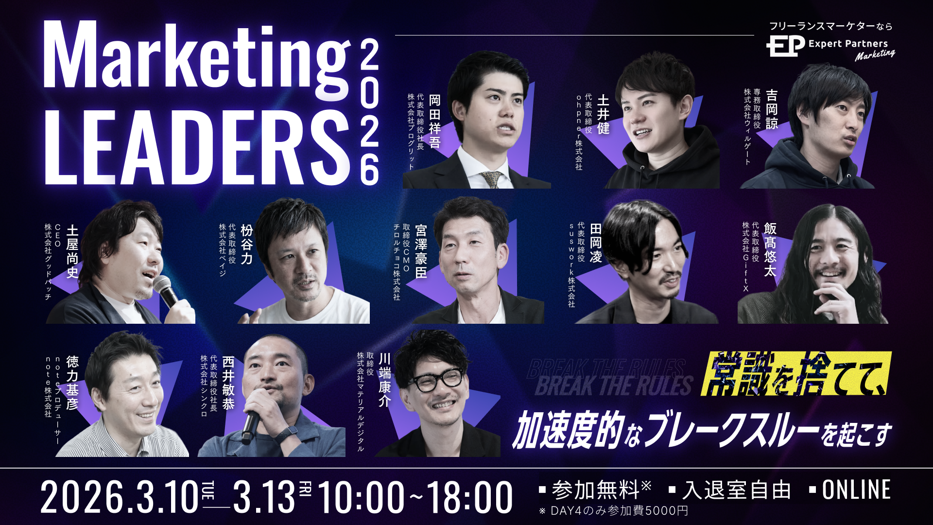 当社取締役 川端康介が、「Markething LEADERS 2026~常識を捨てて、加速度的なブレークスルーを起こす」に登壇します